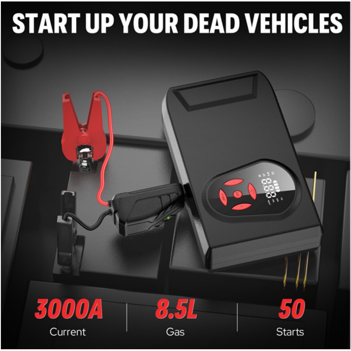 Arrancador de emergencia para vehículos de 12v; Hasta 7,2 L de gasolina o 8,0 L de diésel