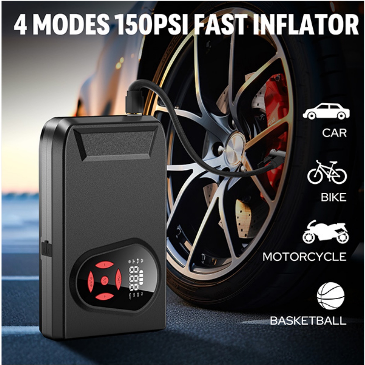 Puede bombear 36PSI para automóviles, 36PSI para motocicletas, 60PSI para bicicletas, 8PSI para pelotas de baloncesto, etc.