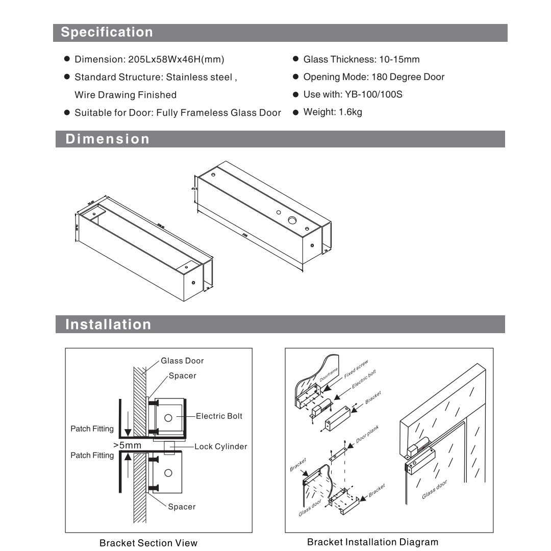El soporte de aluminio es para puerta de vidrio sin marco. Adecuado para puerta Puerta batiente.