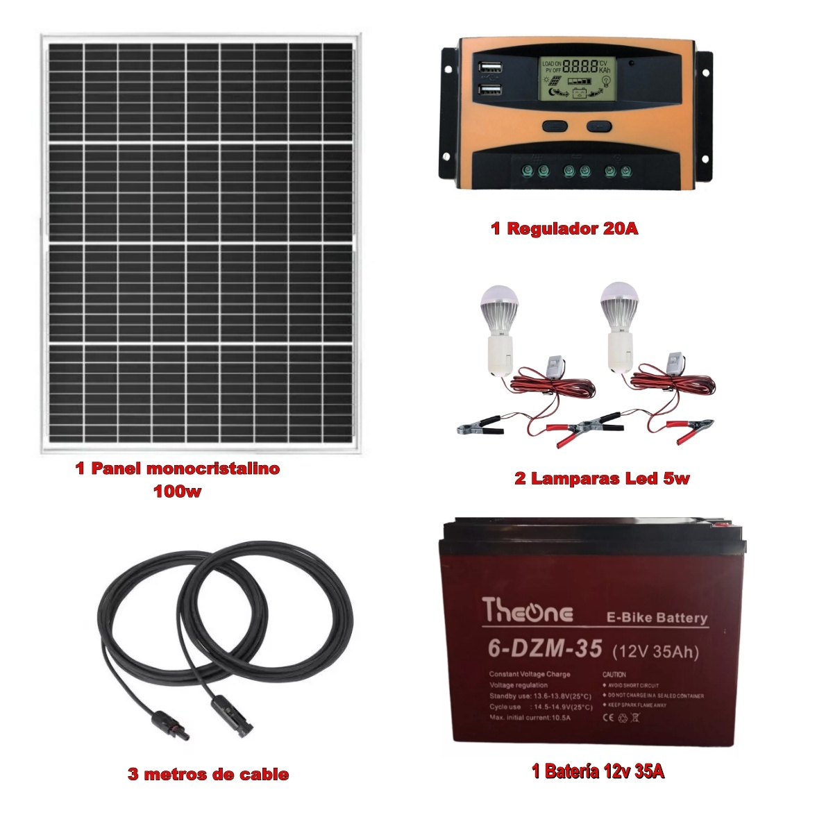 Kit Solar Fotovoltaico Batería 35a Luces Celular Ventilador