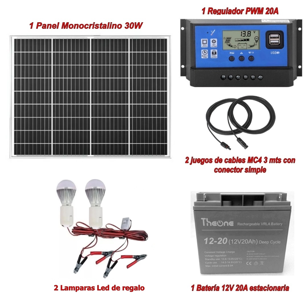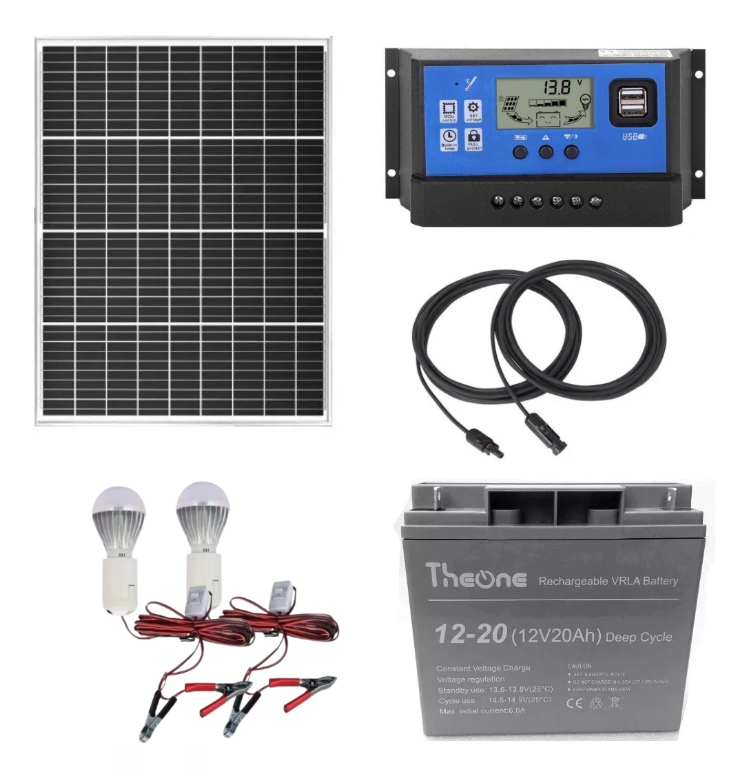 Kit básico para camping, ideal para paseos de verano donde no tienes servicio de energía eléctrica. Este kit te permitirá tener cargados celulares, picos de luz led .