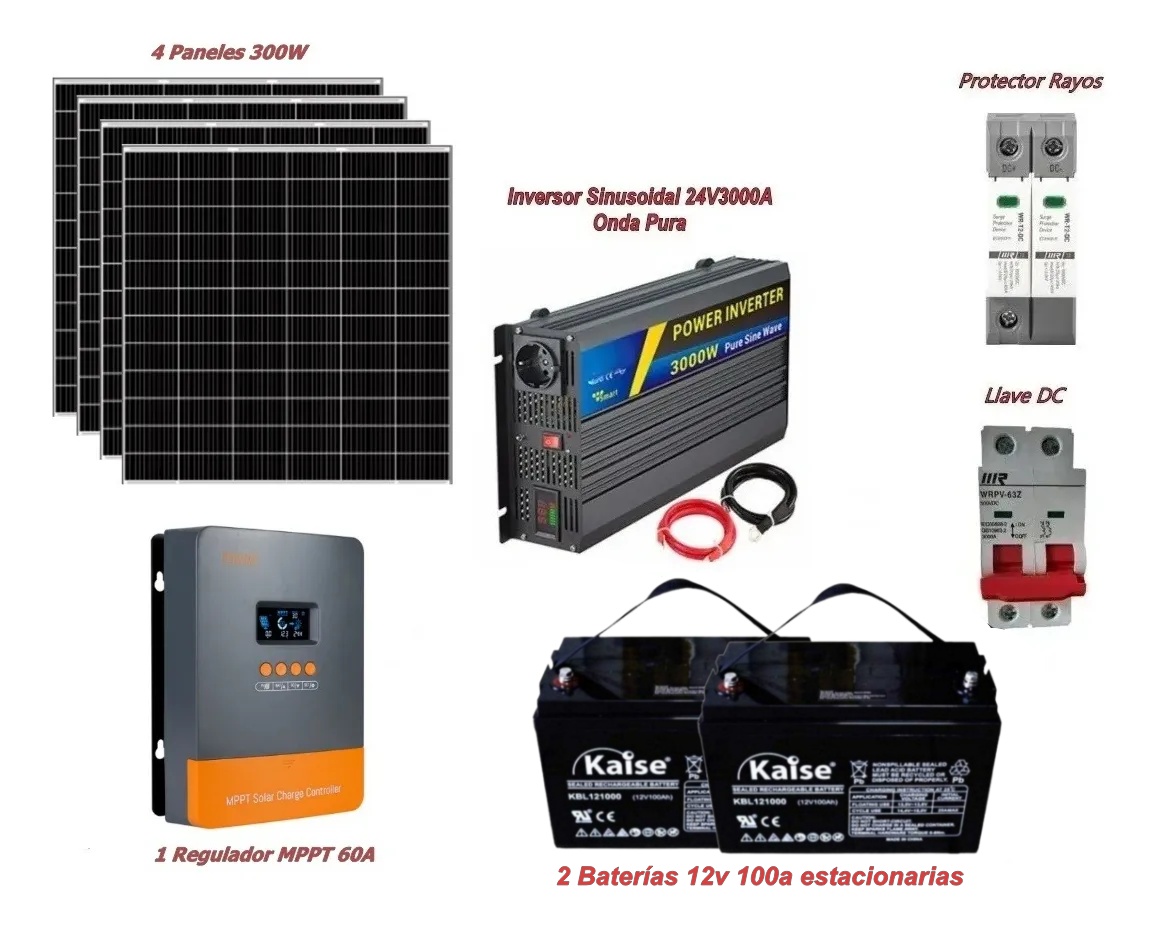 Kit Solar Fotovoltaico Inversor 3000w/4 Paneles 300w/2 Baterías Litio