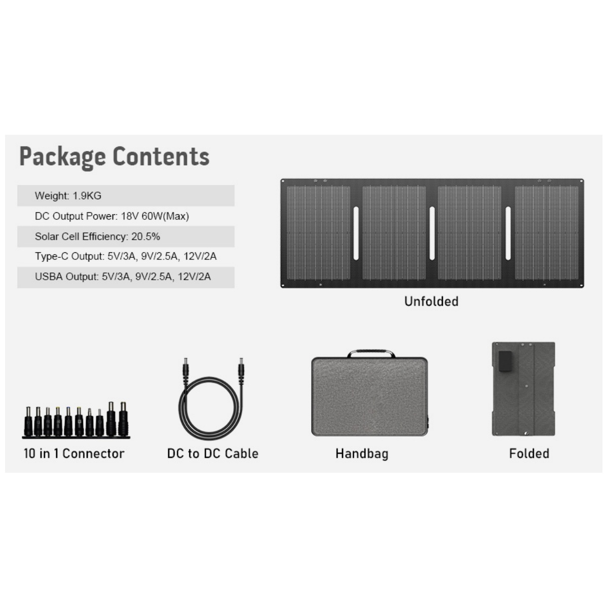 Panel Cargador Solar Portátil Plegable 60w